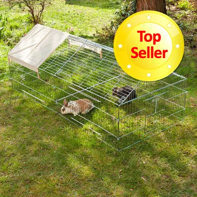 Enclos zingué pour lapin, cochon d'Inde et volaille. Rectangulaire, spacieux, avec toit pointu grillagé et protection contre le soleil.