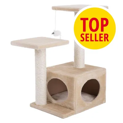 Petit arbre à chat avec niche confortable, 2 plates-formes et jouet. Idéal pour se cacher, se reposer, jouer et faire ses griffes.