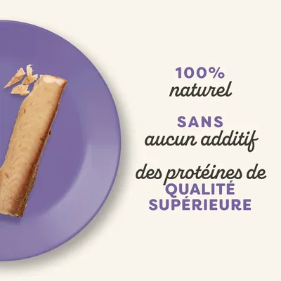 Savoureuse friandise pour chats, assortiment de trois variétés au filet de poisson naturel, sans céréales ni soja, sans additifs, riche en oméga‑3Plus d'informations...